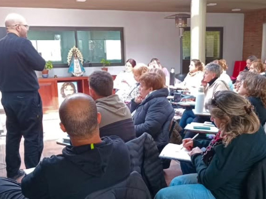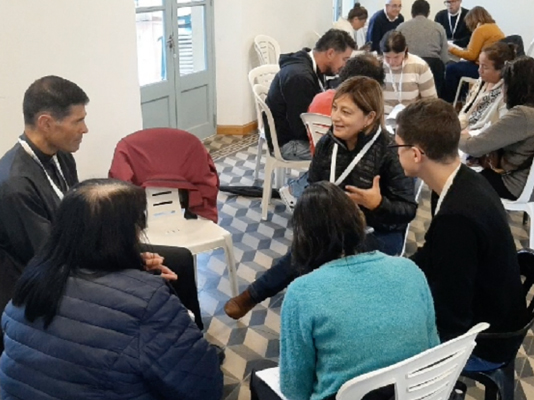 En el logo se reflejan diversas figuras que lo componen: un camino, una cruz, la comunidad en camino y la Virgen de Luján, patrona de los argentinos.