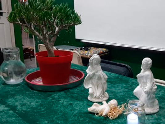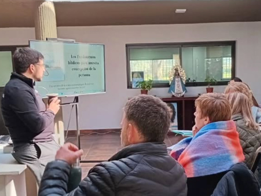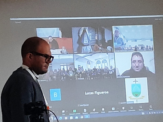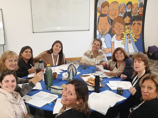 En el logo se reflejan diversas figuras que lo componen: un camino, una cruz, la comunidad en camino y la Virgen de Luján, patrona de los argentinos.